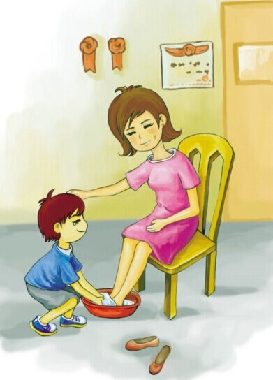 小明说:“妈妈,您辛苦了,坐下休息一会吧!”